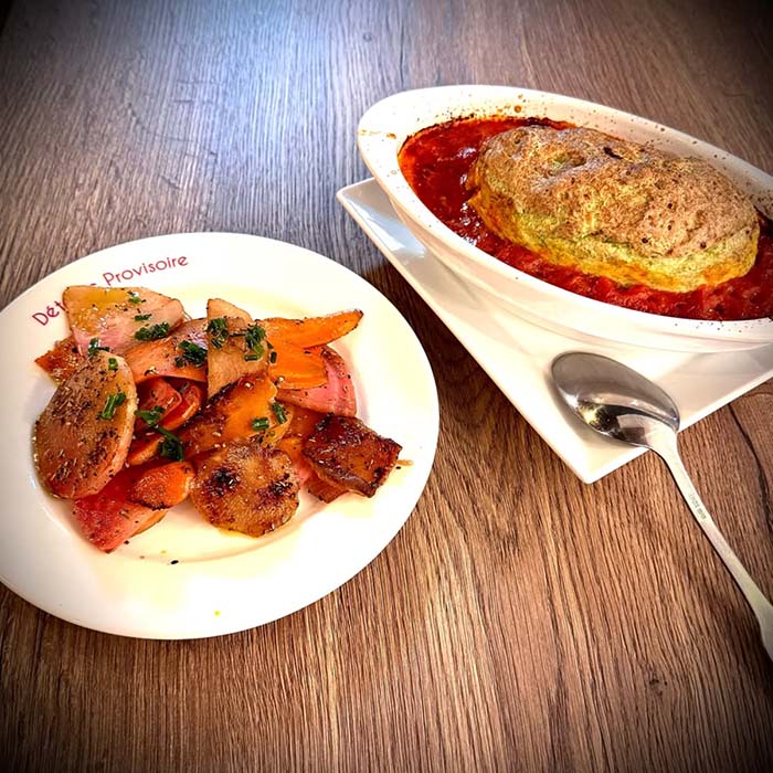 Dans notre cuisine, tout est fait maison. Le chef mijote, tranche, goûte. Il vous sert des plats de saison avec la rigueur d’un gardien… mais la tendresse d’un complice.